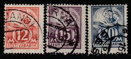 Эстония 1925 год. Стандарт. Ремесленник, 3 марки (гашёные) (55/5)