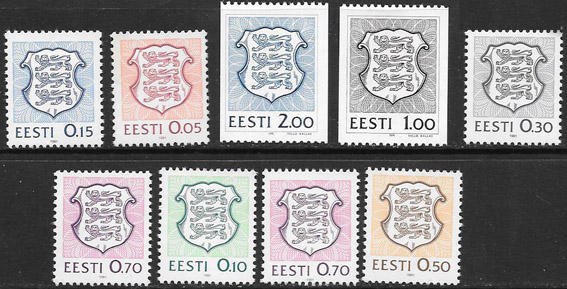 Эстония 1991 год, Стандарт, Герб, 9 марок