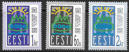 Эстония 1993 год. 75 лет Эстонской республики, 3 марки