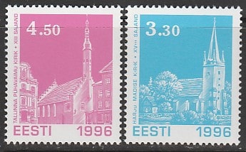 Эстония 1996 год. Рождество. Костёлы, 2 марки