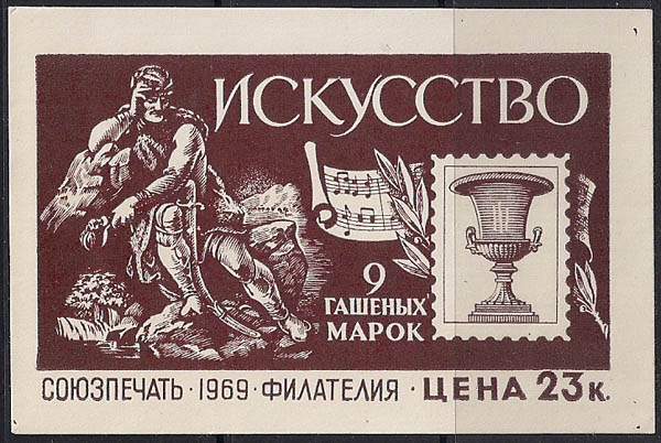 Этикетка к набору марок "Искусство". СССР 1969 год. 23 копейки