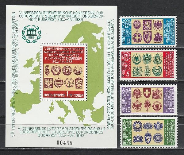Европейское Сотрудничество, Гербы, Болгария 1983, 4 марки + блок