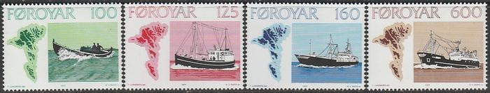 Фарерские острова. Дания. 1977 год. Рыболовецкие суда. 4 марки