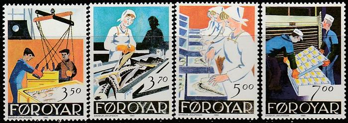 Фарерские острова. Дания. 1990 год. Рыбообрабатывающая промышленность. 4 марки