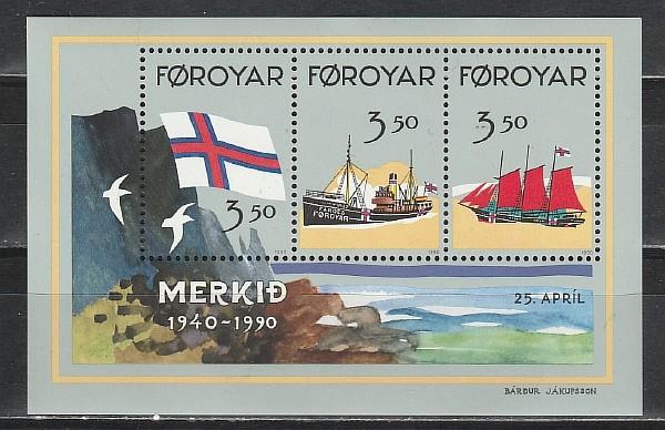 Фареры 1990 г, 50 лет Фарерскому Флагу, блок