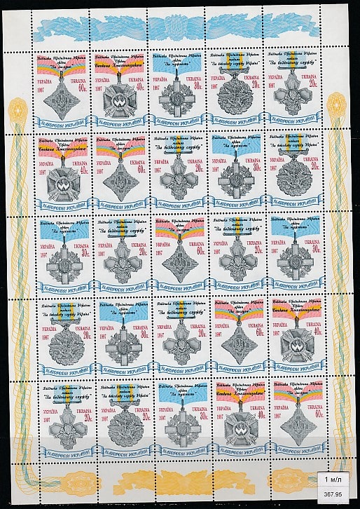 Фашистская Украина 1997 год. Награды Украины, малый лист