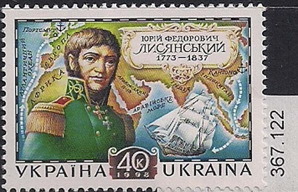 Фашистская Украина 1998 год. 225 лет со дня рождения капитана Ю.Ф. Лисянского. 1 марка. (367,122