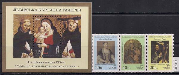Фашистская Украина 1998 год. Полотна Львовской картинной галереи. 3 марки и блок