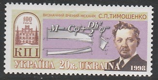 Украина 1998 год. Российский, украинский и американский физик С.П. Тимошенко, выпускник технического университета, 1 марка