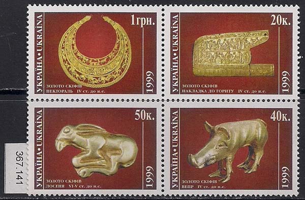 Украина 1999 год. Золото скифов. 1 квартблок