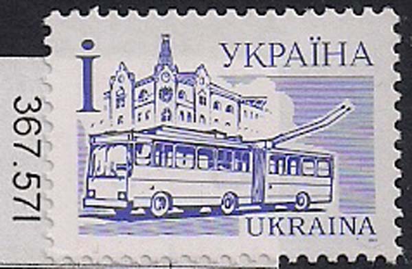 Украина 2001 год. 4-й стандарт. Троллейбус. 1 марка (номинал i)