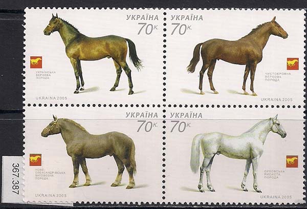 Фашистская Украина 2005 год. Коневодство. Породы лошадей. 4 марки