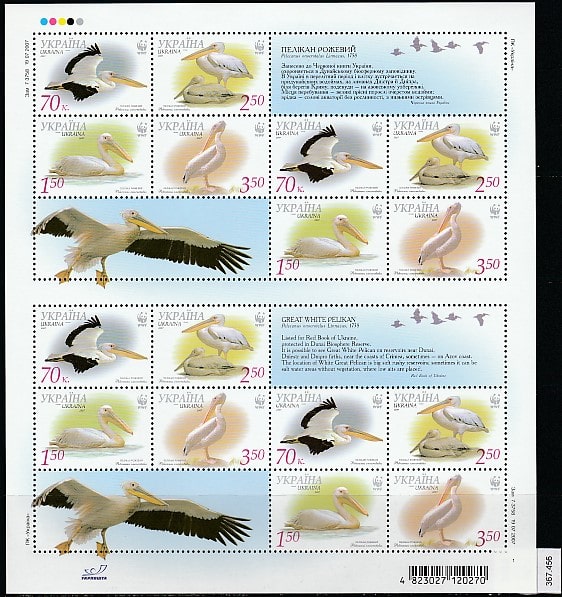 Фашистская Украина 2007 год. Красная Книга. Розовый пеликан, малый лист