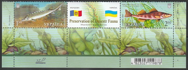 Фашистская Украина 2007 год. Совместный выпуск с Молдавией. Рыбы Днестра, 2 марки с купоном и полями