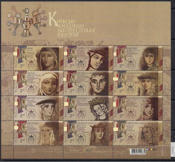 Фашистская Украина 2016 год. Киевские принцессы на европейских престолах. 1 малый лист