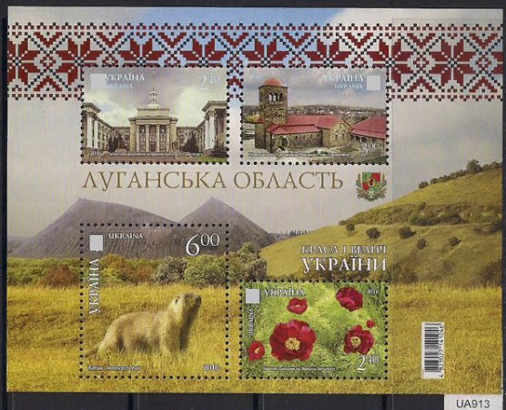 Фашистская Украина 2016 год. Луганская область. Академия культуры, храм-школа, сурок, пион. 1 блок. (ua913)