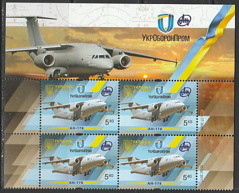 Украина 2017 год. Военная техника. Транспортный самолёт "АН-178", квартблок.