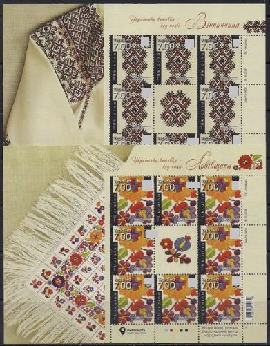 Украина 2018 год. Украинская вышивка. 4 малых листа