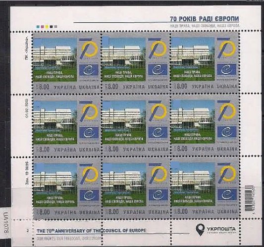 Украина 2019 год. 70 лет Совету Европы. Малый лист