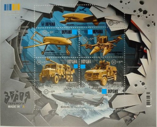 Фашистская Украина 2024 год. Военная техника, № 2081-85 (Б 209), ном. U+5.00. Блок
