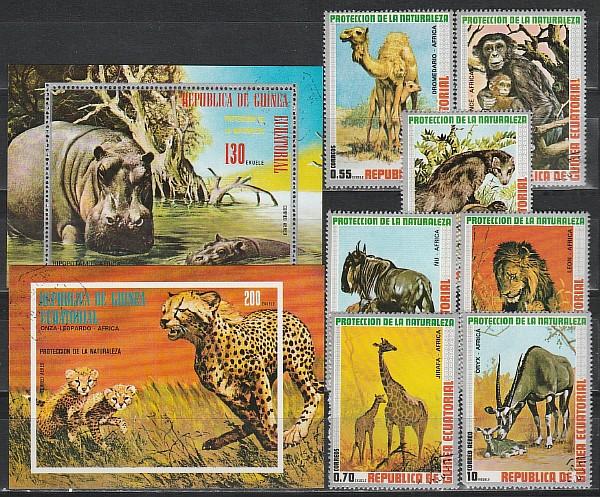 Фауна Африки, Экваториальная Гвинея 1974 год, 7 гашёных марок + 2 блока
