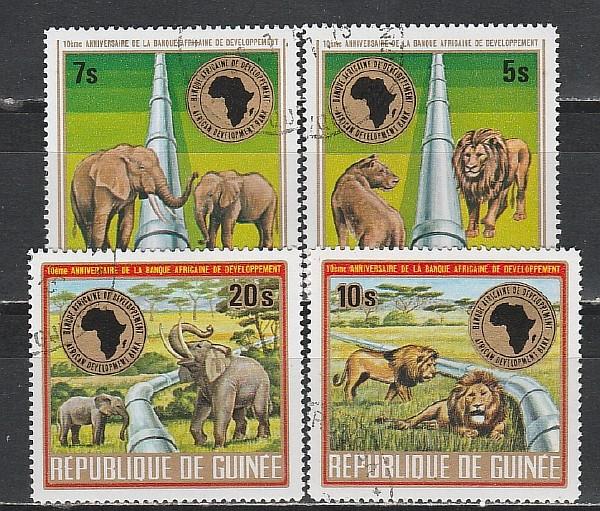 Фауна Африки, Гвинея 1975 год, 4 гашёные марки