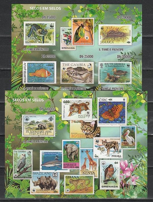 Фауна на Марках, Сан-Томе и Принсипи 2010 год, малый лист + блок без зубцов