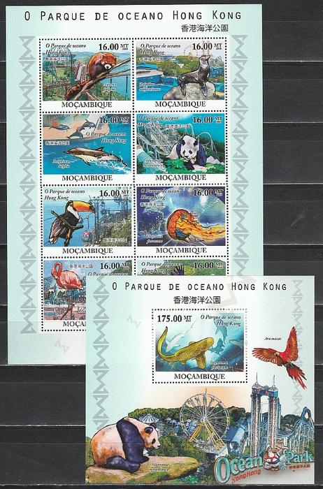 Фауна, Зоопарк Гонконга, Мозамбик 2010, малый лист + блок