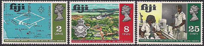 Фиджи 1969 год. Открытие Южно-Тихоокеанского университета на острове Лаукала. 3 марки (3м)