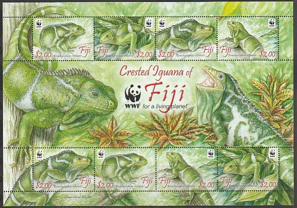 Фиджи 2010 год. WWF. Хохлатая игуана, малый лист (376.1294)