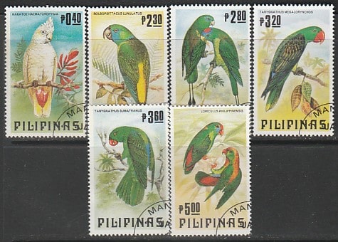 Филиппины 1984 год. Попугаи, 6 марок (гашёные)