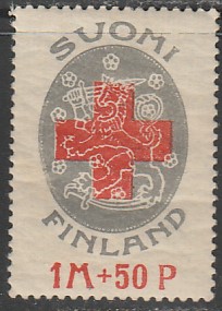 Финляндия 1922 год. Красный Крест, 1 марка (с наклейкой)