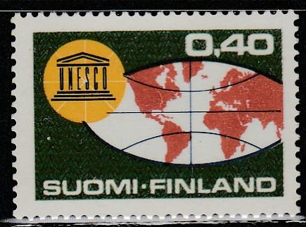 Финляндия 1966 год. Глобус и эмблема ЮНЕСКО. 20 лет ЮНЕСКО. 1 марка