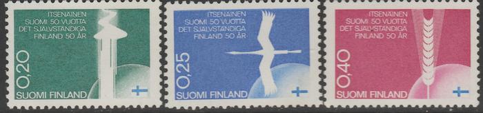 Финляндия 1967 год. 50 лет Независимости. 3 марки
