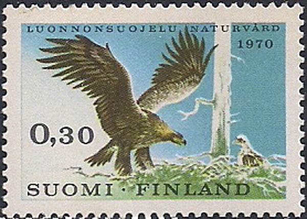 Финляндия 1970 год. Европейский год защиты природы. Беркут с детёнышем. 1 марка