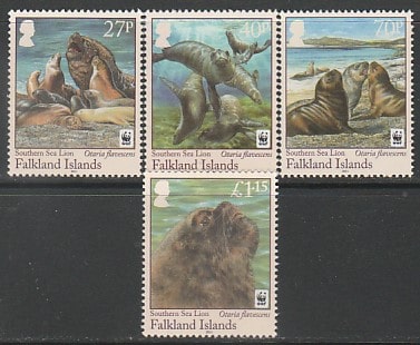 Фолклендские острова 2011 год. WWF. Гривистый тюлень, 4 марки (н