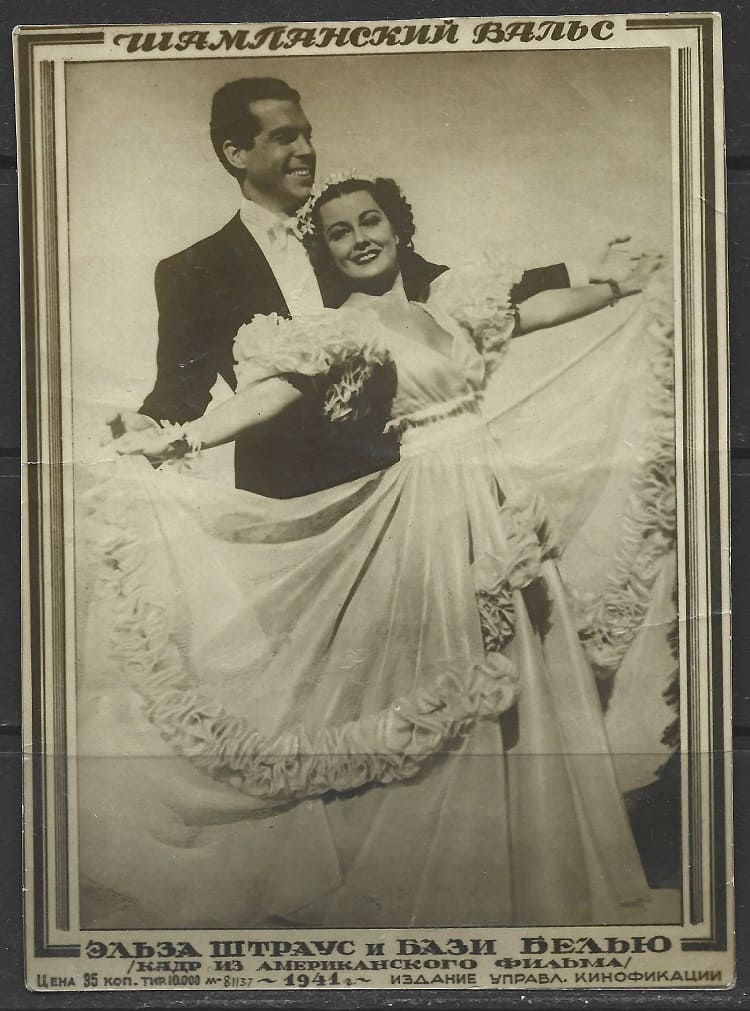 Фото артистов Эльза Штраус и Бази Белью в кинофильме "Шампанский вальс". 1941 год.