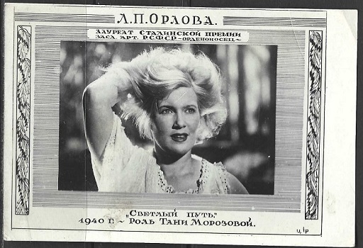 Фото Орлова Л.П. Засл.Арт.РСФСР, Орденоносец в фильме "Светлый путь". Роль Тани Морозовой. 1940 год.