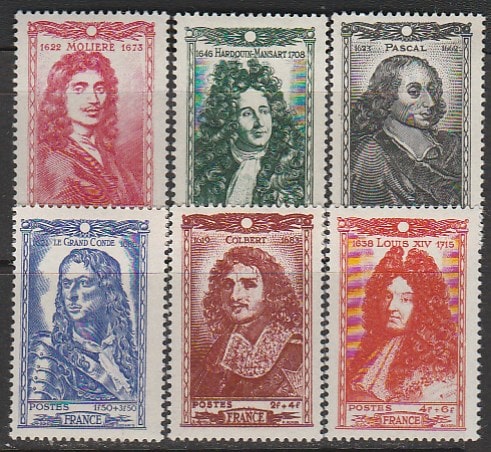 Франция 1944 год. Национальная помощь. Известные личности XVII века, 6 марок (наклейка)