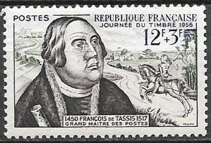 Франция 1956 год. День почтовой марки. Франц фон Таксис. 1 марка