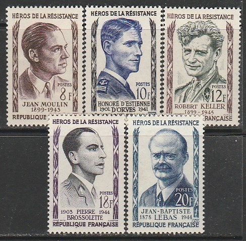 Франция 1957 год. Бойцы сопротивления, 5 марок (наклейка)