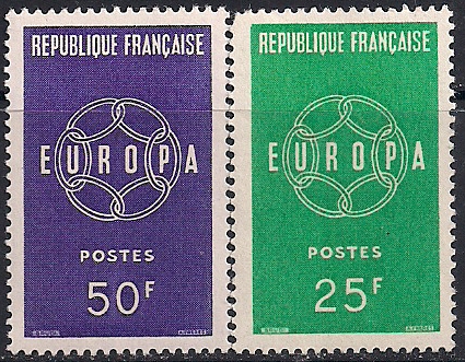 Франция 1959 год. Европа СЕПТ. Символическая цепочка из шести звеньев вокруг "Европа". 2 марки