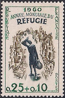 Франция 1960 год. Всемирный год помощи оставшимся без жилья. 1 марка с наклейкой