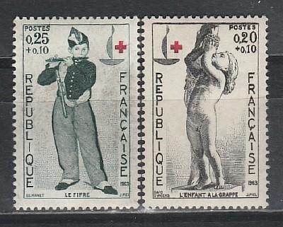 Франция 1963 год. Красный Крест. Дети. 2 марки.