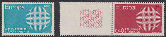 Франция 1970 год. Европа СЕПТ. Плетение в виде солнца, 2 марки