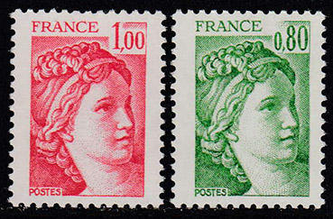 Франция 1977 год. Стандарт. Марианна, 2 марки