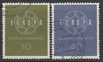 ФРГ 1959 год. Европа СЕПТ. Символическая цепь вокруг слова "Европа", 2 марки (гашёные)