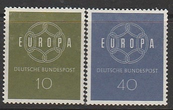 ФРГ 1959 год. Европа СЕПТ. Символическая цепь вокруг слова "Европа", 2 марки (наклейка)
