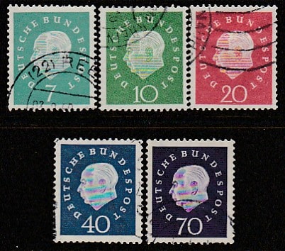 ФРГ 1959 год. Стандарт. Первый президент ФРГ Теодор Хойс, 5 марок (гашёные)