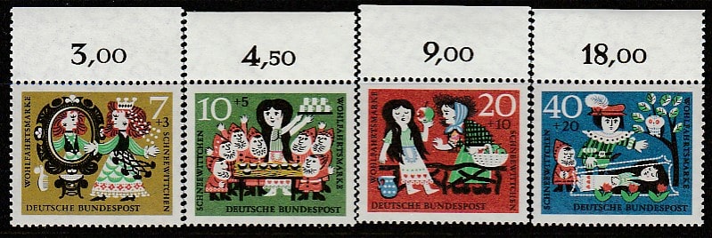 ФРГ 1962 год. Иллюстрации к сказкам братьев Гримм, 4 марки с цифровым полем.